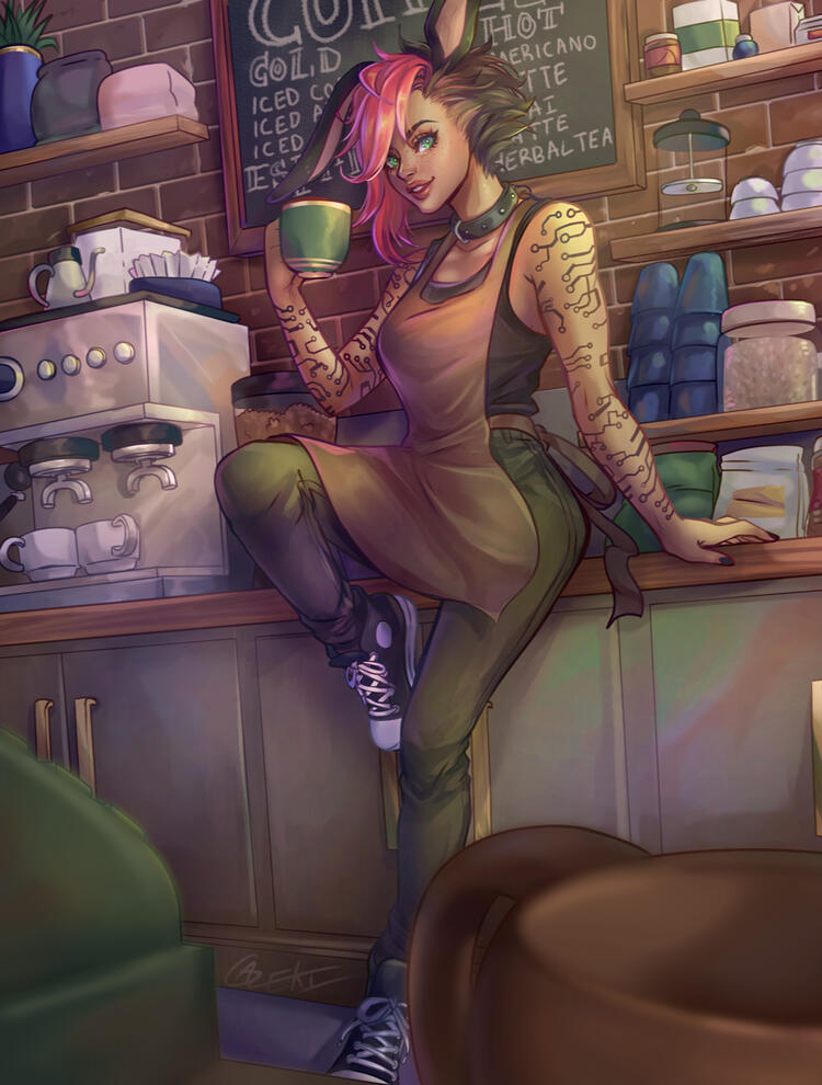 Fully rendered painting style with the most detail. Finer rendering and comes with more detailed background. Extra detailed backgrounds (things like detailed cities or mechanics) are extra.